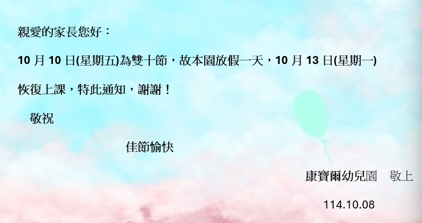雙十節放假通知單