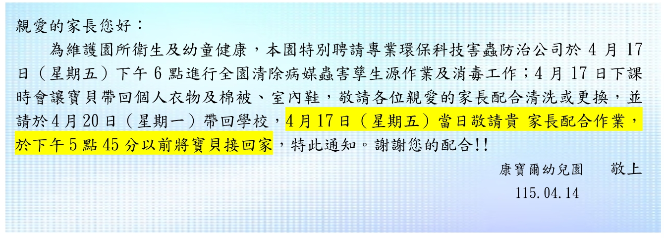 114學年度第二學期消毒通知單